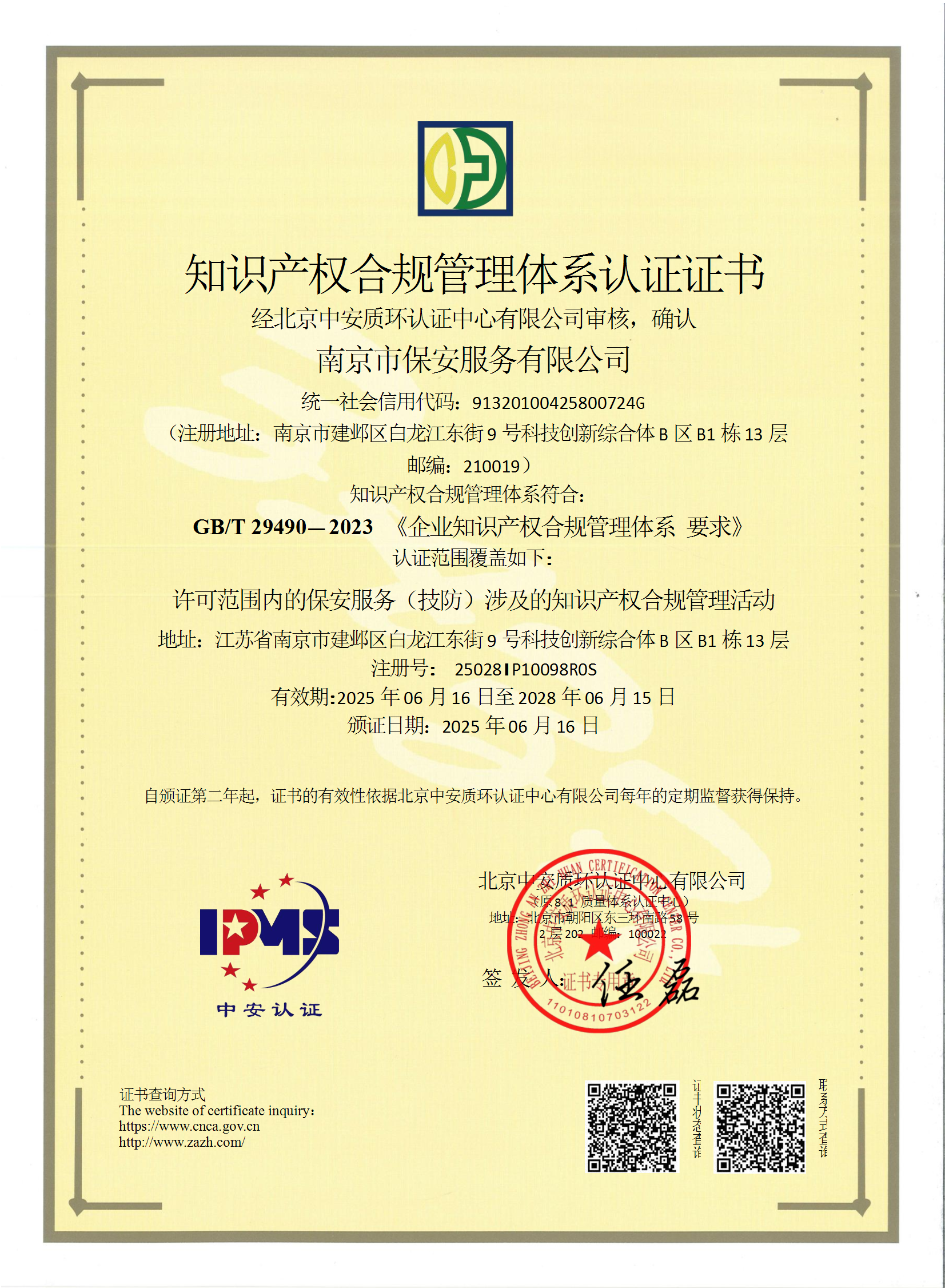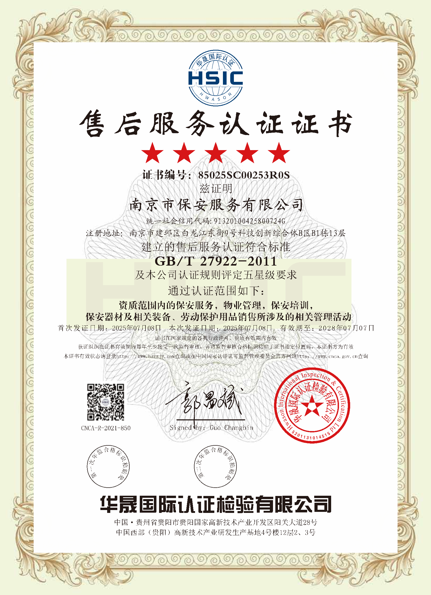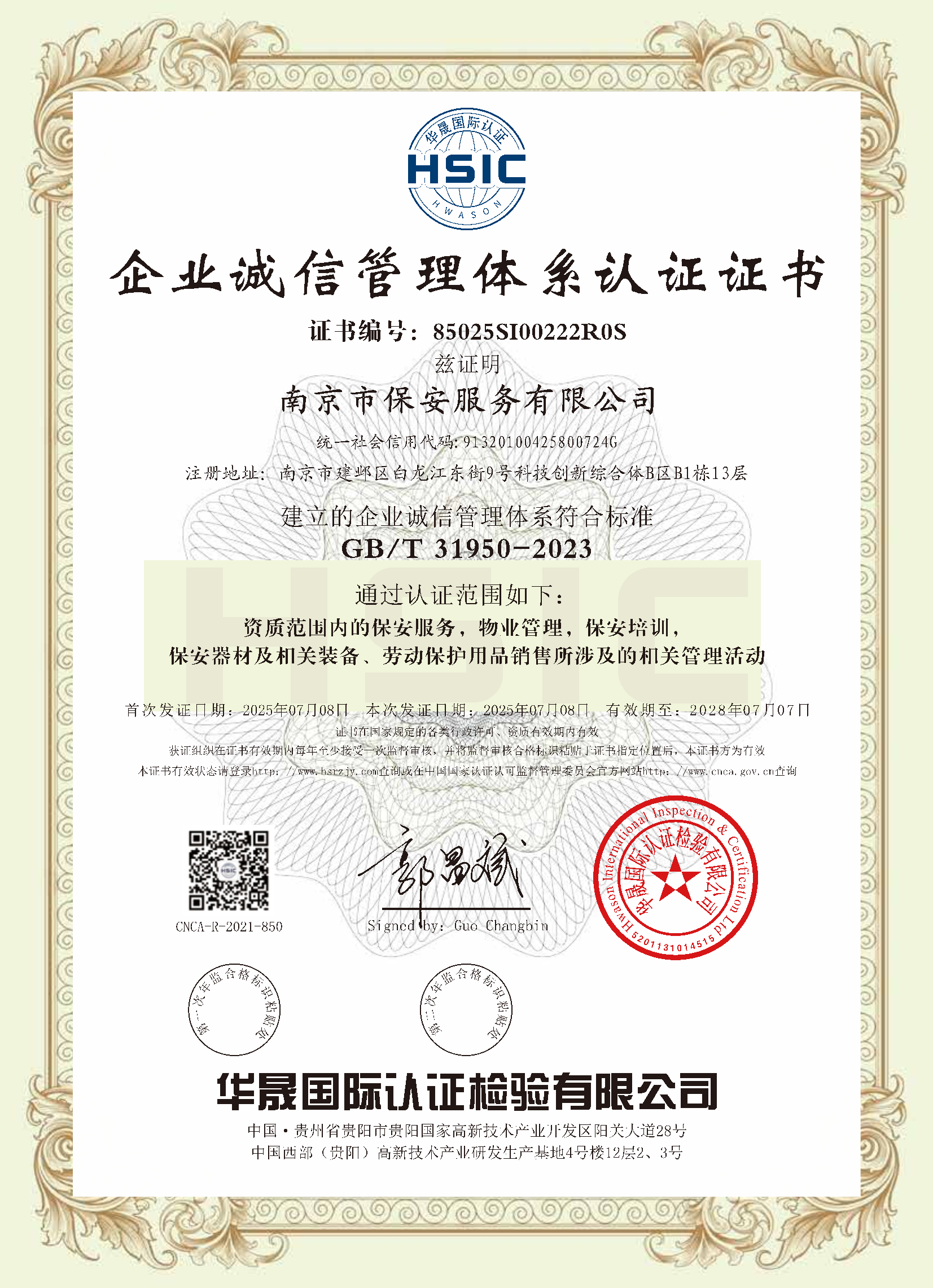 祝賀:南京市保安服務(wù)總公司通過企業(yè)誠信管理體系認證和企業(yè)社會責任管理體系認證